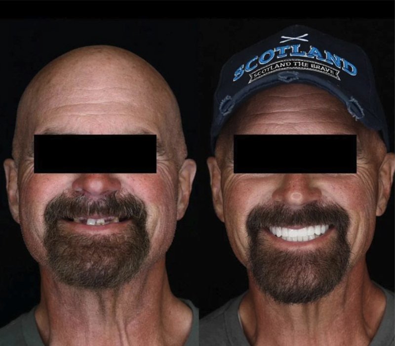 The traditional All-On-4® procedure involves four implants and acrylic denture teeth over a titanium frame. Our doctor has modified this procedure based on his experience and knowledge to provide an even better result for his patients!